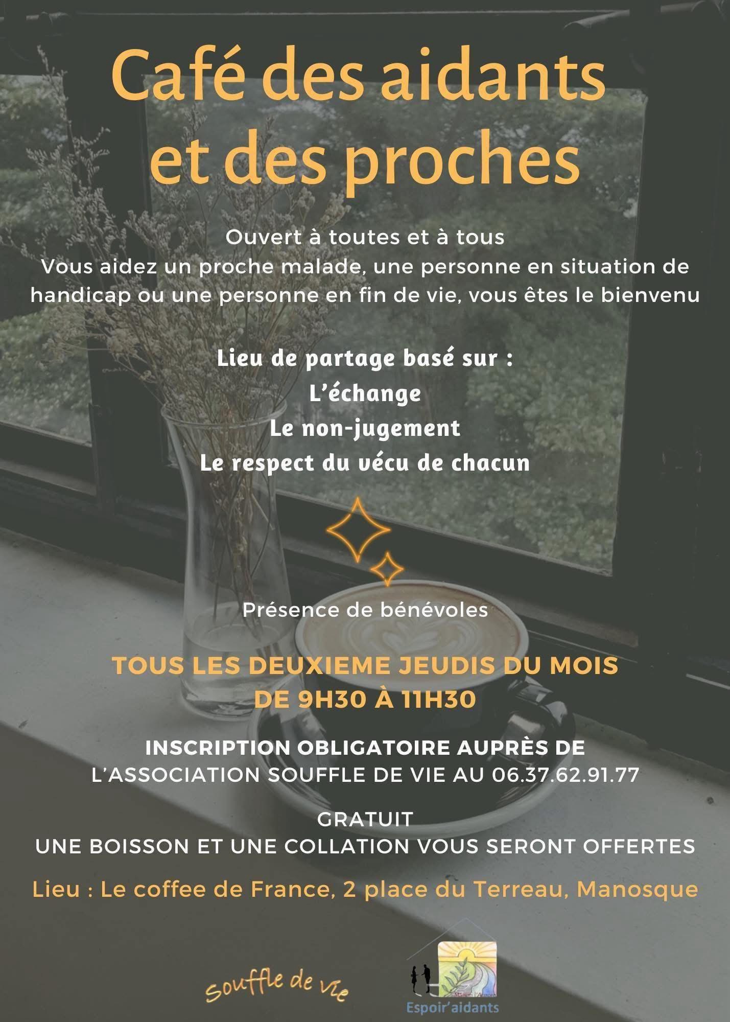 L’association souffle de vie est fière de vous proposer de son café des aidants et des proches, en partenariat avec espoir’ aidants !